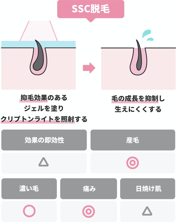 「SSC」は肌のダメージが少なく、痛みを感じにくい