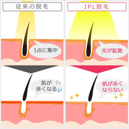 - 光を拡散させながら脱毛するからヤケドのリスクが低い